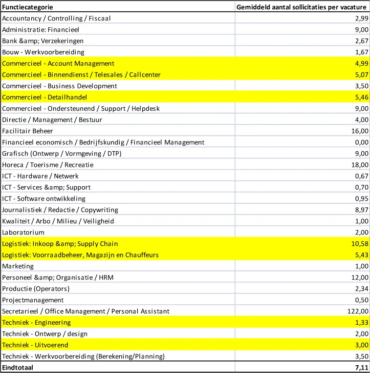 Trendonderzoek: aantallen sollicitaties per vacature