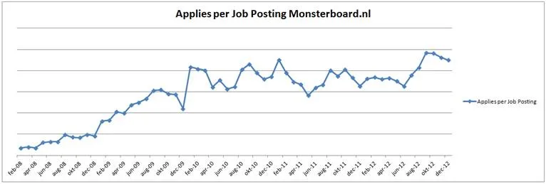 Hieronder een grafiek die het aantal sollicitaties per vacature laat zien sinds begin 2008.